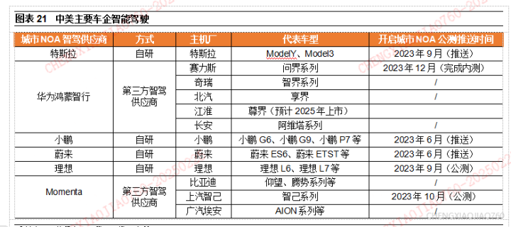 政策端来看,国内主要一线城市正在加快完善智能驾驶法规体系并支持商业化试点。例如,2024年12月北京十六届人大常委会第十四次会议通过的《北京市自动驾驶汽车条例》(于2025年4月1日起实施),首次针对L3级以上级别的个人乘用车自动驾驶测试上路做出了具体规定,支持L3级以上自动驾驶车辆用于个人乘用车、出租车、城市公共汽电车等。