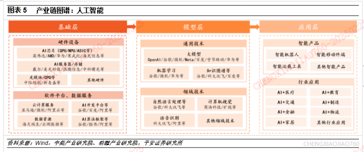 3.AI应用层:中美均在加快AI技术应用落地,中国有望凭借庞大市场规模、商业化能力等优势取得超越。